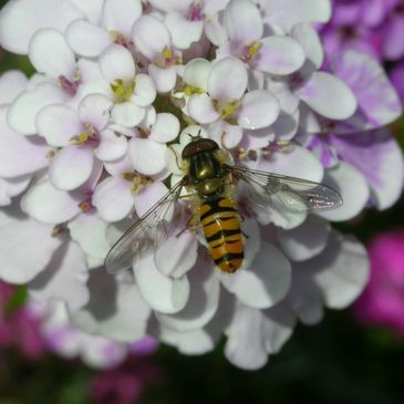 Syrphidae are also known as flower-flies or hoverflies, because of their role as pollinators and their hovering behaviour.
